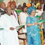 From left: His Royal Highness, the Oba of Lagos, Oba Rilwan Osuolale Akiolu 1; Baba Eto of Lagos, Chief Folarin Coker, and Asoju Oba of Lagos, Chief Molade Okoya-Thomas, at the 10th Coronation Anniversary of the Oba in Lagos on Sunday.