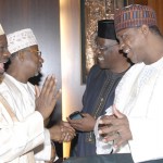 President Goodluck Jonathan (right) receiving a letter from Cameroon’s Special Envoy, Amadou Ali at the Presidential Villa, Abuja on Thursday