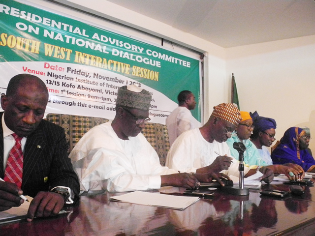 Members of the Presidential Advisory Committee on National Dialogue, at the South West interactive session in Lagos on Friday