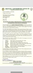 Our Client acknowledges the commitment of the Inspector-General of Police towards complying with extant legislations granting citizens the right to hold public meetings, public rallies and public processions and the lawful discharge of the obligations placed upon the police to provide adequate coverage and protection at the venues.