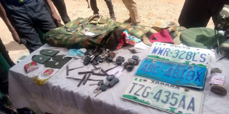 Others items included fabricated master keys, five bunches of motor vehicle keys, Nigerian Army Identity card with rank of Major and three sets of motor vehicle plate numbers.