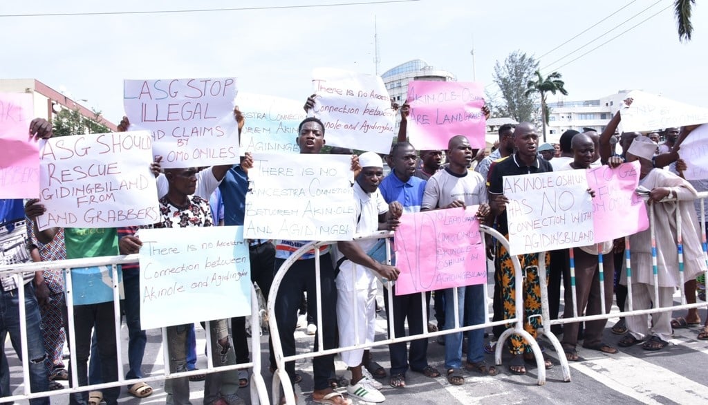 “There is no ancestral connection between Akinole and Agindingbi”, LASG: Stop illegal land grabbers”, “Akinole-Oshiun Family members are land grabbers, “Land grabbers are enemies of Lagos State”, and “Enough is enough for land grabbers.”