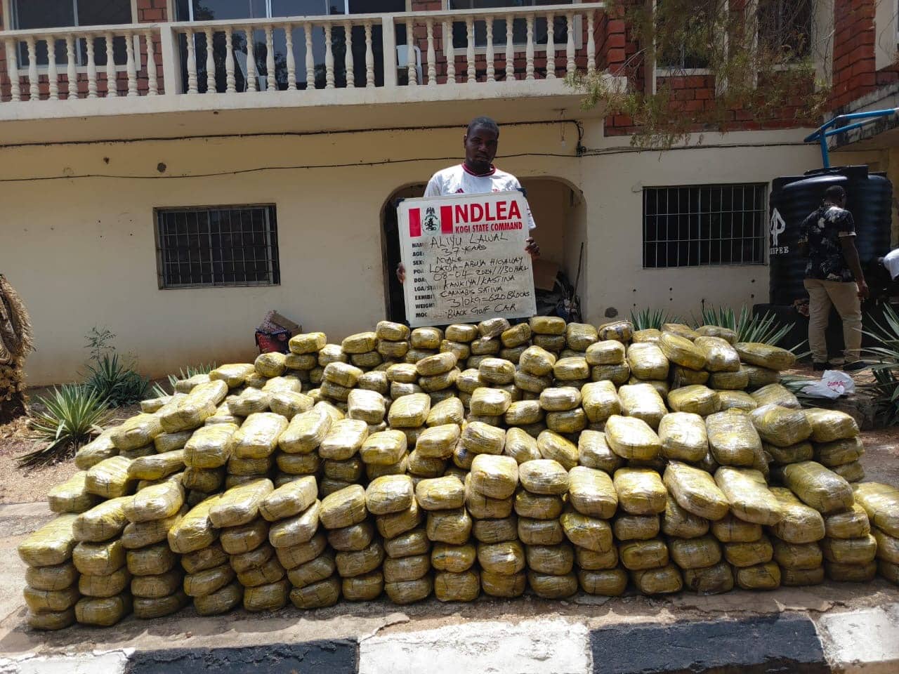 This is even as NDLEA officers in collaboration with men of the Nigerian Navy Ship Lugard base, Lokoja intercepted 37-year-old Aliyu Lawal along Lokoja-Abuja road on Monday 8th April and recovered 620 blocks of cannabis weighing 310kg from him, while 10 sacks of the same psychoactive substance weighing 98kg were seized along Okene-Lokoja-Abuja express way by NDLEA operatives from Jama Obodo, 44, in a commercial bus coming from Ilesha, Osun state enroute Taraba state on Wednesday 10th April.