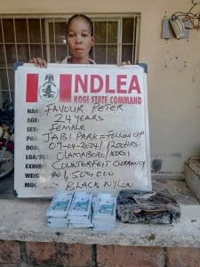 Operatives of the National Drug Law Enforcement Agency, NDLEA, have intercepted a commercial bus conveying N3.2million counterfeit cash owned by three suspects: eight-month pregnant Favour Peter, 24; Esther Adukwu, 27, and Ochigbo Michael, 39, who were arrested at Jabi park in Abuja in a follow up operation on Tuesday 9th April following the seizure of the fake naira notes in Lokoja, Kogi state.
