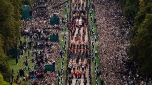 Thousands of people lined the streets to witness the passage of the queen’s casket from the historic Westminster Hall to nearby Westminster Abbey, and eventually on to Windsor Castle where she will be laid to rest alongside her late husband.