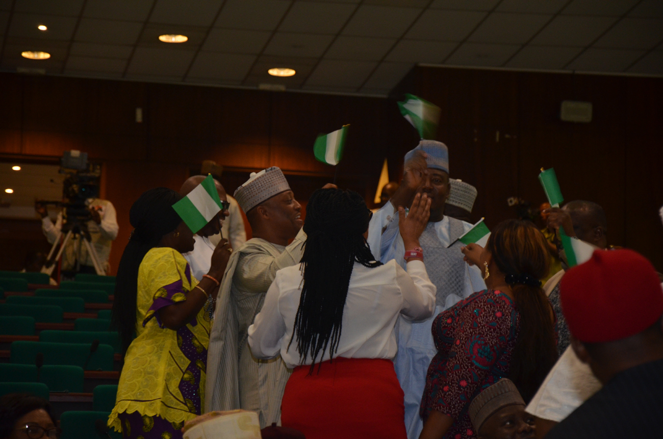 Some members of the House of Representatives expressing their anger against the deregulation policy of the Federal Government during a special session in Abuja…on Monday.