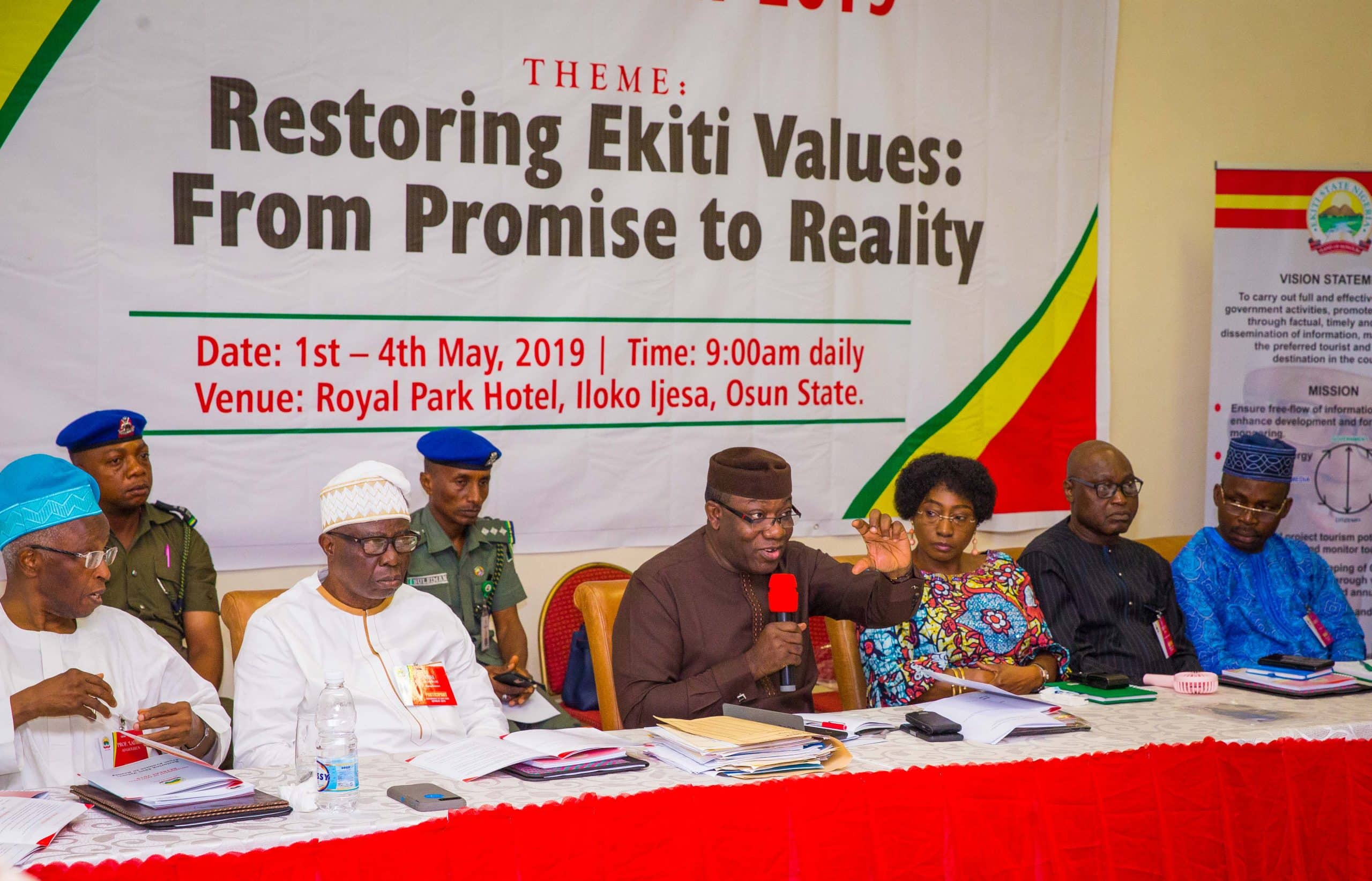 Fayemi said the retreat, with the theme, ‘Restoring Ekiti Values: From Promise to Reality’, was designed to get all heads of MDAs to buy into the development agenda of the administration.