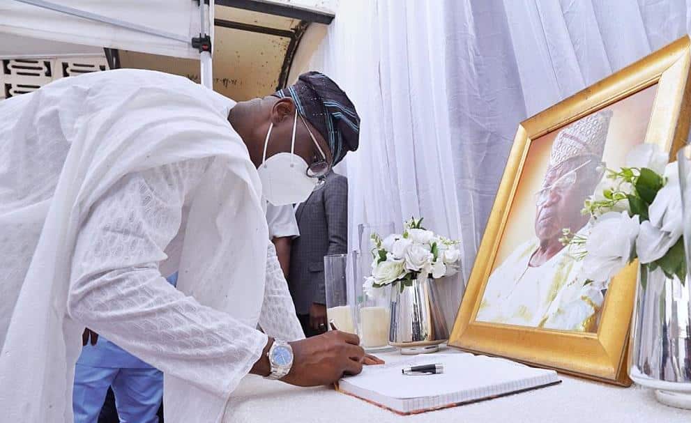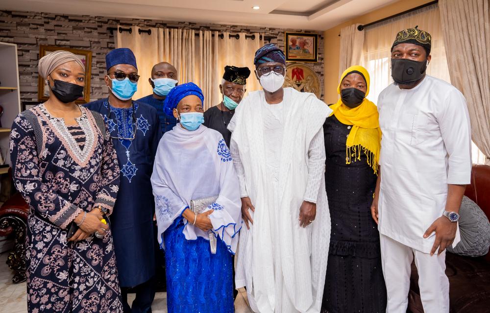 Sanwo-Olu arrived at the deceased’s residence, at 10:23am, in company of the Secretary to the State Government, Mrs. Folashade Jaji, Head of Service, Mr. Hakeem Muri-Okunola, Chief of Staff, Mr. Tayo Ayinde, Commissioner for Local Government and Chieftaincy Matters, Dr. Wale Ahmed, Commissioner for Information, Mr. Gbenga Omotoso, and the State’s Attorney General, Mr. Moyosore Onigbanjo, SAN.