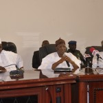 Senate President, Dr. Bukola Saraki, Deputy Senate President, Ike Ekweremadu, Senators Danjuma Goje, Shehu Sani and others when they received #RescueOurGirlsNow Advocates, led by Dr. Joe Okei-Odumakin, at the National Assembly Complex, Abuja.