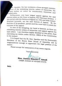 The Chief Judge said his decision was based on court orders that prohibited him from creating such a panel. He said he hoped the lawmakers would be “magnanimous enough to appreciate the legal position of the matter”.