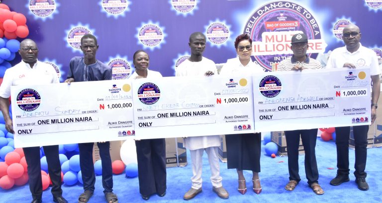No fewer than six customers of Dangote Cement Plc in Lagos, on Tuesday, emerged millionaires in its ongoing “Bag of Goodies Season 3” national consumer promotion.