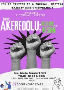 Members of Take It Back Movement are already in Akure, the state capital, to mobilise residents for the ‘Occupy Ondo State’ protest which will take place at the Akure Town Hall.