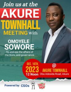 But, Sowore, on Sunday night, said the protest scheduled for Saturday, “is to address the affairs of the state, governance and concerns related to Governor Akeredolu”.