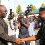Abia State Governor, Okezie Ikpeazu, receiving the Inspector General of Police (IGP), Ibrahim Idris, to his office in Umuahia during ...