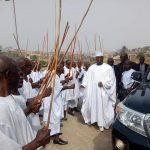 Palace guards of His Royal Majesty, Oba Adebori Yusuf Adeleye, the Olubaka of Oka-Akoko, Ondo State, giving the Aare Ona Kakanfo-designate ...