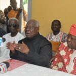 L-R: Dare Adeleke; former Minister of Transport, Chief Ebenezer Babatope; former Chairman, Peoples Democratic Party (PDP) in Ogun State, Chief ...