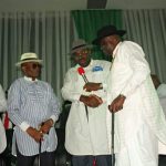 Governor Seriake Dickson of Bayelsa State (left) with former Deputy National Chairman of the Peoples Democratic Party (PDP), Chief Olabode ...