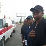 Governor Ayodele Fayose of Ekiti State with others at Fajuyi Roundabout, Ado-Ekiti to receive the bodies of the six doctors ...