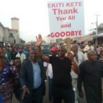 Ekiti State Governor, Chief Ayodele Fayose, on Saturday evening, walked round major streets in Ado-Ekiti, the state capital, thanking the ...
