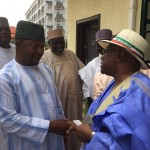 National chairmanship aspirant, Chief Bode George (right), with some elders of the Peoples Democratic Party (PDP) from the North after ...