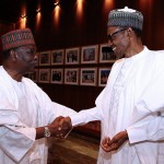 Former Head of State, General Yakubu Gowon (left), with President Muhammadu Buhari at the Presidential Villa, Abuja...on Tuesday.