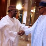 President Muhammadu Buhari (right) and General Yakubu Gowon (rtd) when the latter visited the Presidential Villa, Abuja...on Tuesday.