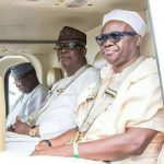 R-L: Governor Ayodele Fayose of Ekiti State, Senator Babafemi Ojudu and Minister of Solid Minerals Development, Dr. Kayode Fayemi, leaving ...