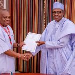 Former Governor of Abia State and Founder, Orji Uzor Kalu Foundation (OUKF), Dr. Orji Kalu, presenting a letter from President ...