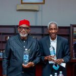 Ondo State Governor, Arakunrin Rotimi Akeredolu (SAN), with the Chairman of Lasena Waters, Dr. Lance Elakama, after the governor paid ...