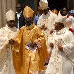 L-R: Archbishop of Jos, Archbishop Ignatus Kaigama; Archbishop Emeritus of Ibadan Archdiocese, Archbishop Felix Alaba Job; Archbishop Alfred Adewale ...