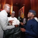 R-L: Vice President Yemi Osinbajo and the Director-General, Nigerian Maritime Administration and Safety Agency (NIMASA), Dr. Dakuku Peterside, welcoming the ...