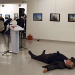 Andrei Karlov, the Russian ambassador to Ankara, lies on the floor next to his killer, 22-year-old Turkish policeman, Mevlut Mert ...