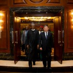 President Muhammadu Buhari with Mr Jin Zhuanglong, Board Chairman, Commercial Aircraft Corporation of China joined by (L-R) Governor Nasir El-Rufai ...