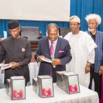 L-R: Prof Olufemi Vaughan; Vice Professor Prof Yemi Osinbajo; Senator Bassey Ewa-Henshaw; Ambassador Folasho Olukoya; Prof Wole Soyinka and Bishop ...