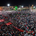 Thousands of civilians take to the streets to protest against the coupists in Istanbul, Turkey...on Friday night.