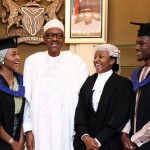 President Muhammadu Buhari with his children (from left) Zahra Buhari, Halimat Buhari-Sheriff and Yusuf Buhari as he celebrates with them ...