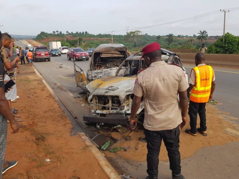 Five persons, including two nuns, were incinerated at dawn on Wednesday when two vehicles collided at Nawfia on Enugu-Awka Expressway in Anambra State.