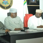 Governor Ifeanyi Ugwuanyi of Enugu State (left) receiving the Chairman, House of Representatives Committee on Army, Rimamande Shawulu, when he led other committee members on a courtesy visit to the governor in the Government House, Enugu…on Monday.