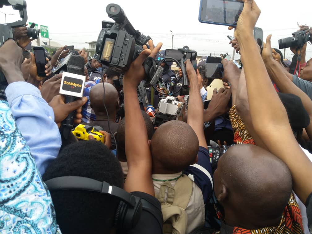 The service lane of the Ojota-Ikorodu road was blocked by some of the security vehicles, forcing commercial vehicles coming from Ketu to Maryland to take the expressway.