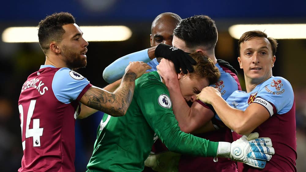 A 48th-minute goal from Aaron Cresswell earned West Ham United a surprise 1-0 victory at Chelsea in the Premier League on Saturday, their first win since September.