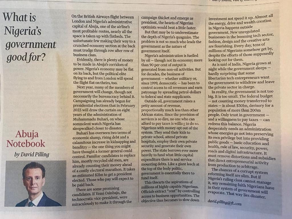 But that may be to underestimate the depth of Nigeria’s quagmire. The problem is not so much who leads the government as the nature of government itself.