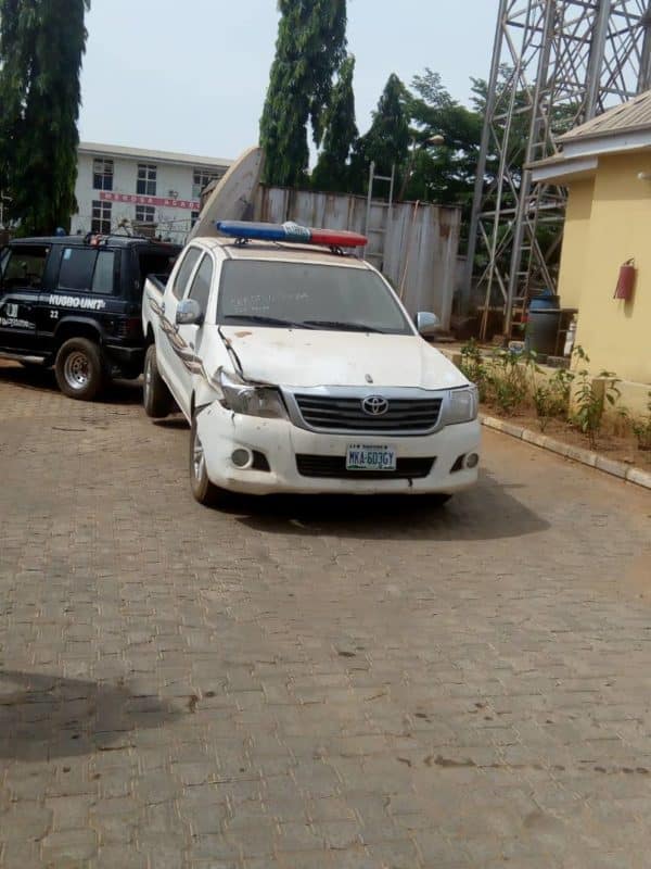 The witness informed the court that while on duty on April 24, 2018, a white-coloured Toyota Hilux with Registration No. MKA 603 GY, was brought for him to record as exhibit.
