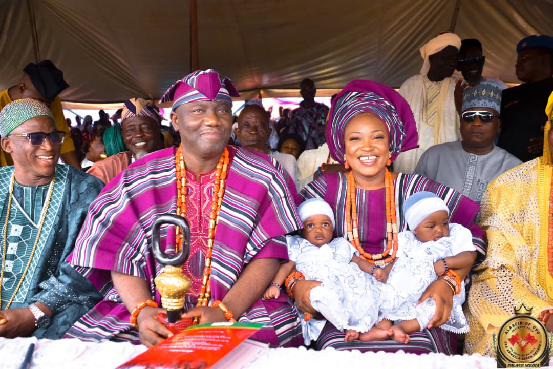 Symbolically, a mother of twins presented her children to both the Alaafin and Ayaba , after which His Imperial Majesty carried the twins before they were returned to their mother amid admiration from the crowd.