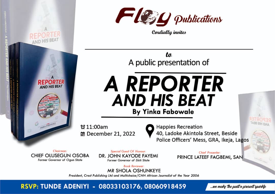 Abiodun Adeniyi, a Professor of Communication at the Baze University, Abuja, says that by writing A Reporter and His Beat, Yinka Fabowale, has scored the goal of a true professional. “The professional needs some detouring to document travails, travels, tests, and triumphs, not just for the younger practitioners, students, researchers, neutral readers, and much else, but also to relieve the self of the inner burden to give back, by sharing life’s lessons from a personal prism,” he says.